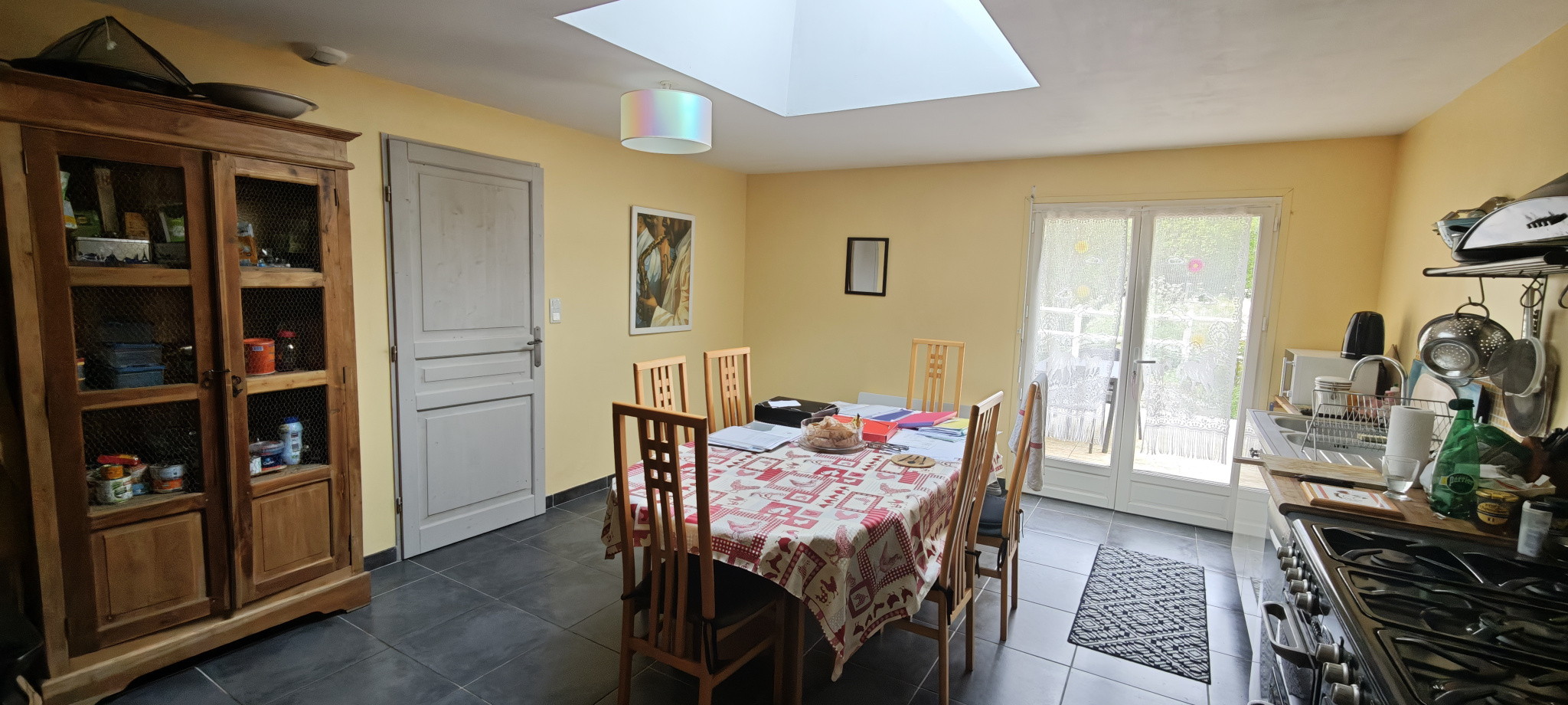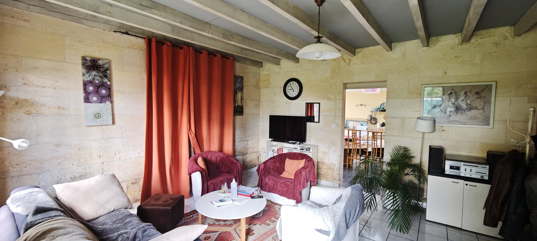 Maison en pierre mitoyenne d’un côté, d’environ 85 m² habitables, surface au sol totale de 206.23 m², située sur la commune de Macau, sur une parcelle de 887 m².